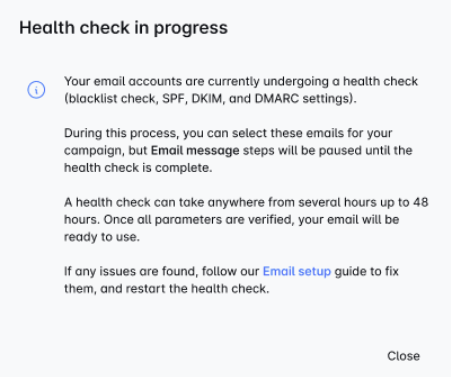 We’re introducing a brand-new Email Health Check feature to make sure your emails are always ready to run campaigns smoothly. Every connected email is automatically checked once a week, so you don’t have to worry about hidden issues affecting your results.