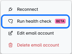 To run a check yourself, click the three dots next to the email and choose Run health check. We’ll verify everything and let you know if you’re good to go. Clean setup, clear status, and better deliverability — all in one place ✉️
